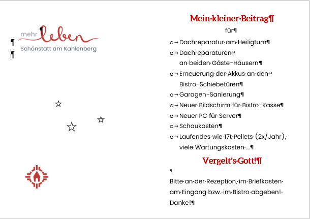 1. Dezember 2025mehr leben – so haben wir am Neubeginn von Schönstatt am Kahlenberg vor zwei Jahren die Rückmeldungen unserer Gäste zusammengefasst. mehr leben – das dürfen wir seither immer wieder aufs Neue erfahren: deutlich mehr als 25.000 Besucher in diesem Jahr.
